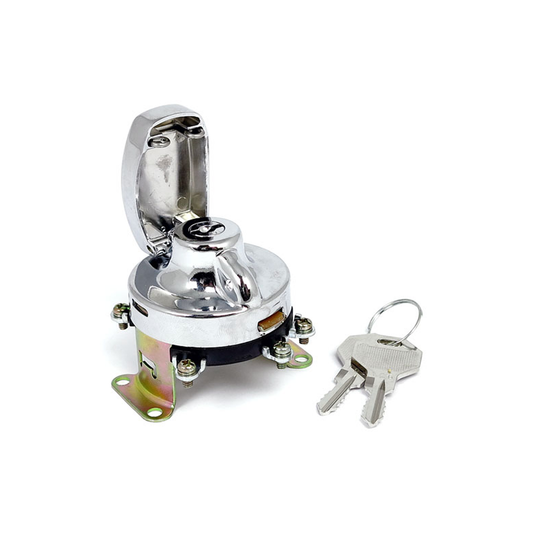 FL Style Ignition Switch. 5-Pole, Flat Key, Chrome 36-72 FL BC16310